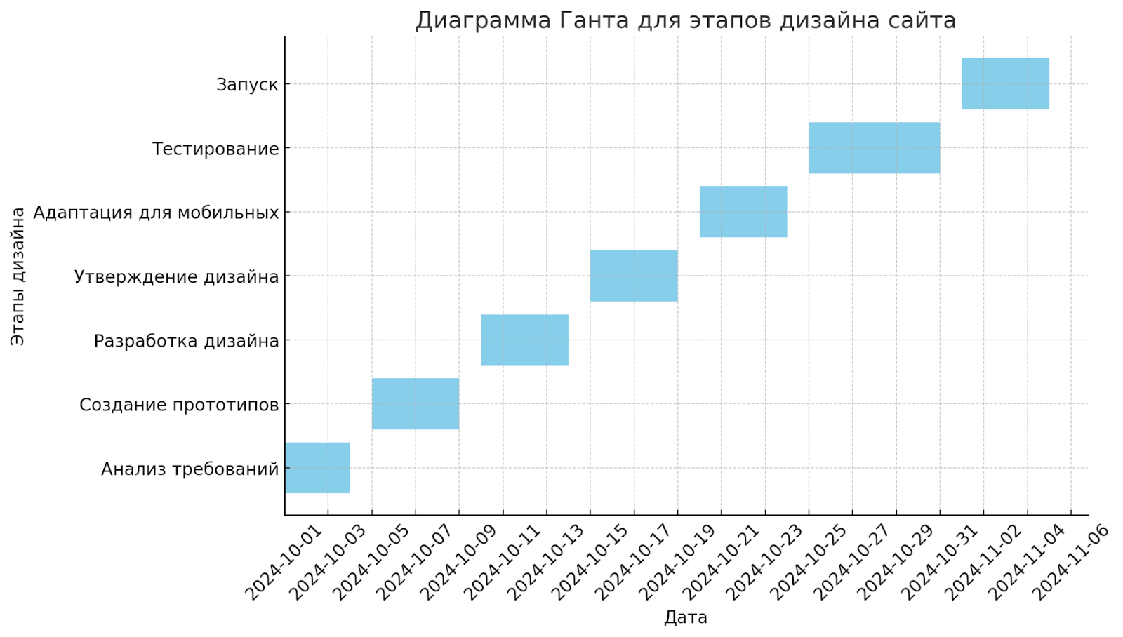• Время выполнения каждого этапа работы.